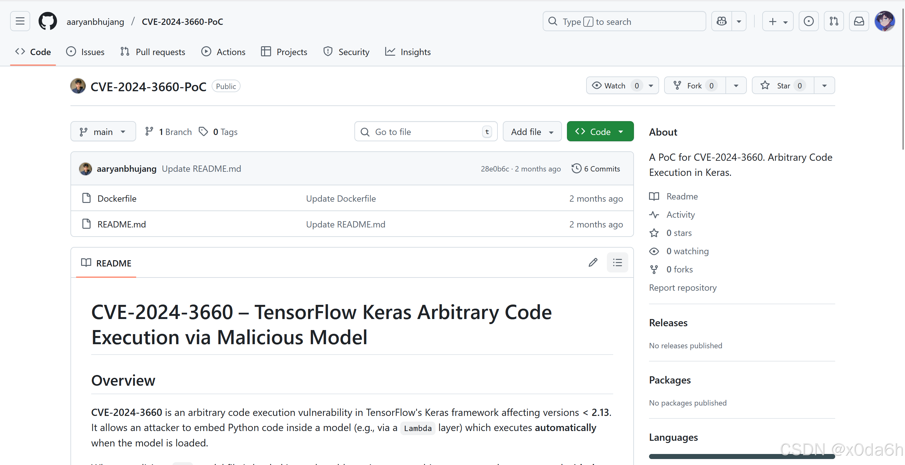 ARG LPORT=4444WORKDIR /CVE20243660# Install curl, wget, and TensorFlow CPU wheel