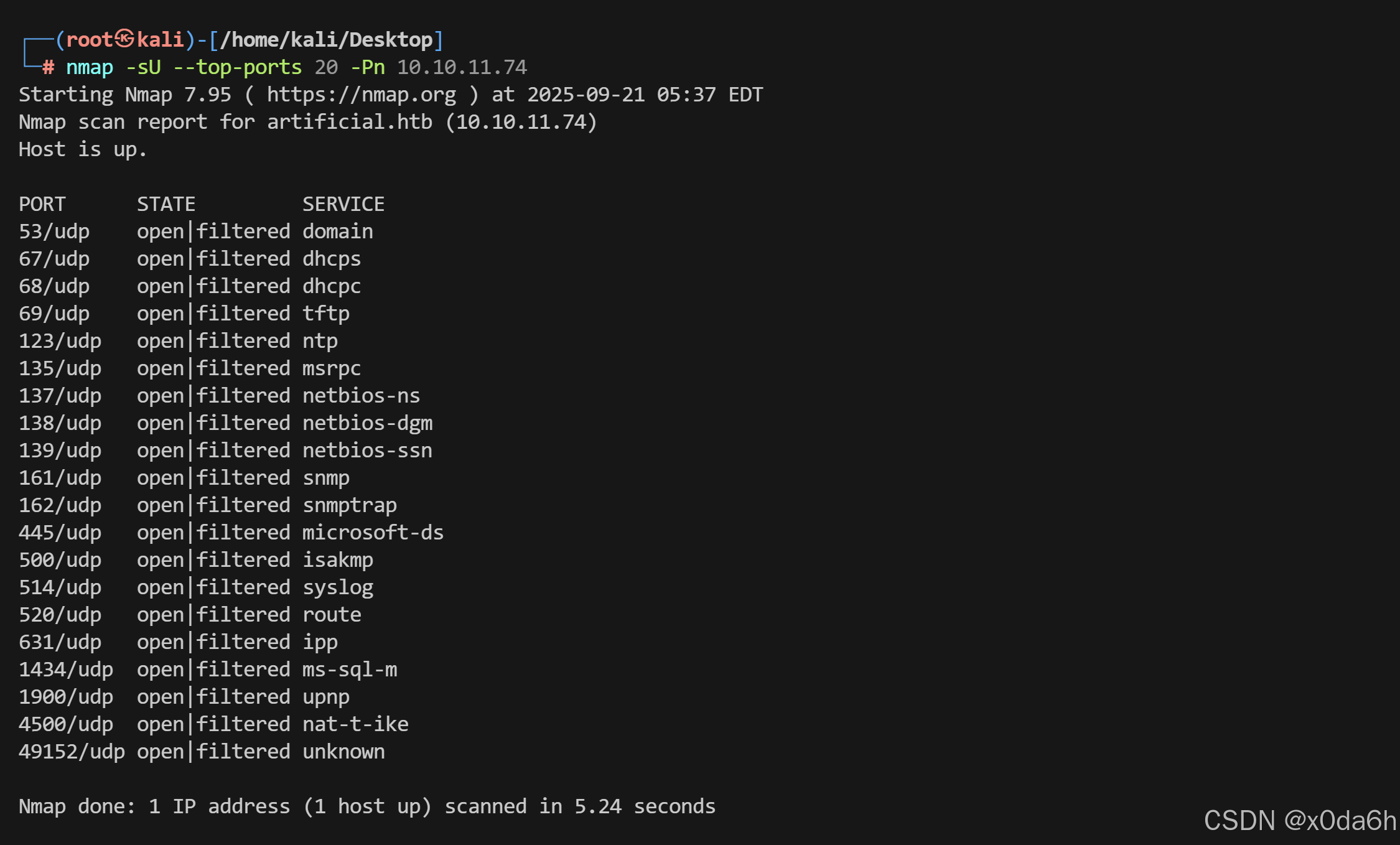 nmap -sU --top-ports 20 -Pn 10.10.11.74