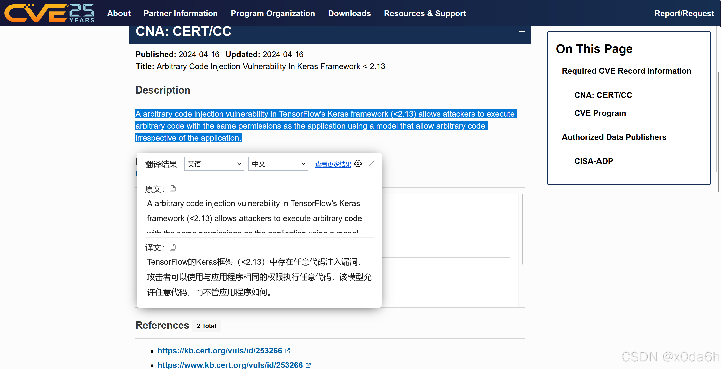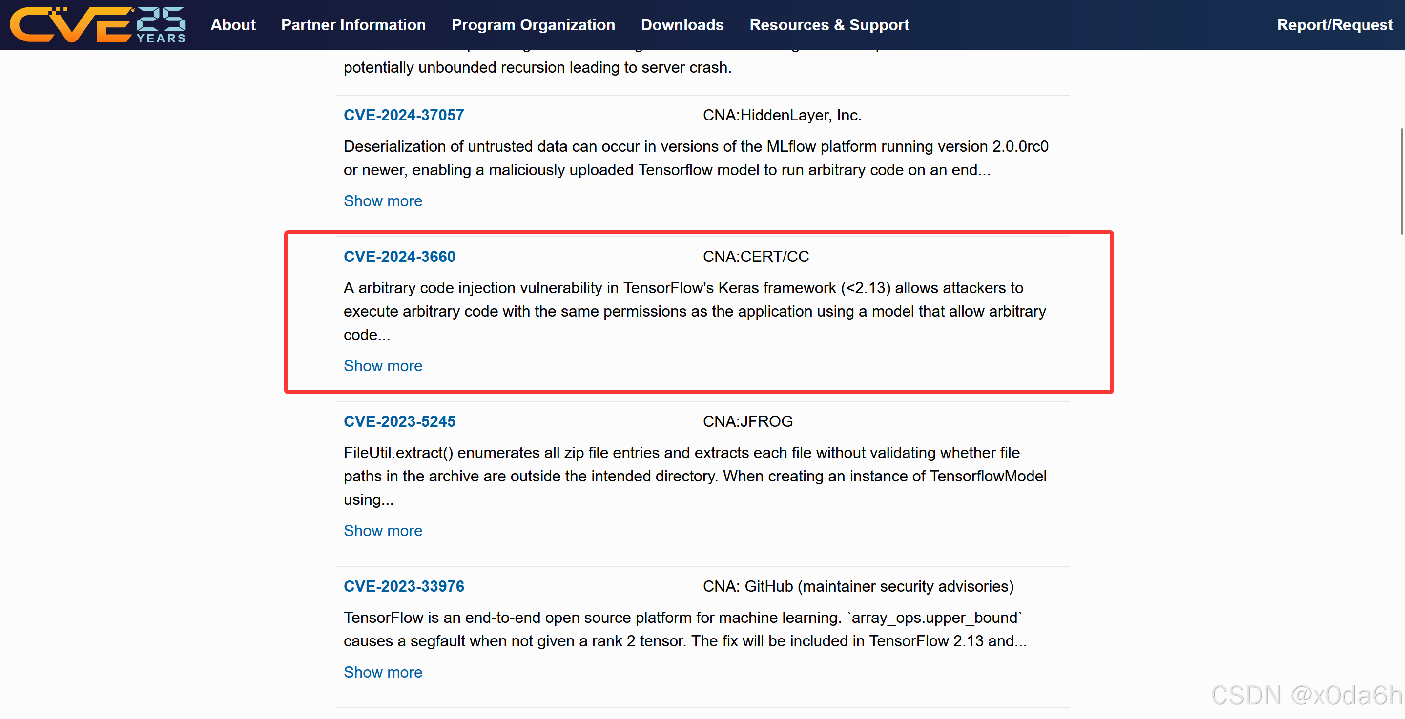 在CVE.ORG中检索tensorflow历史CVE漏洞