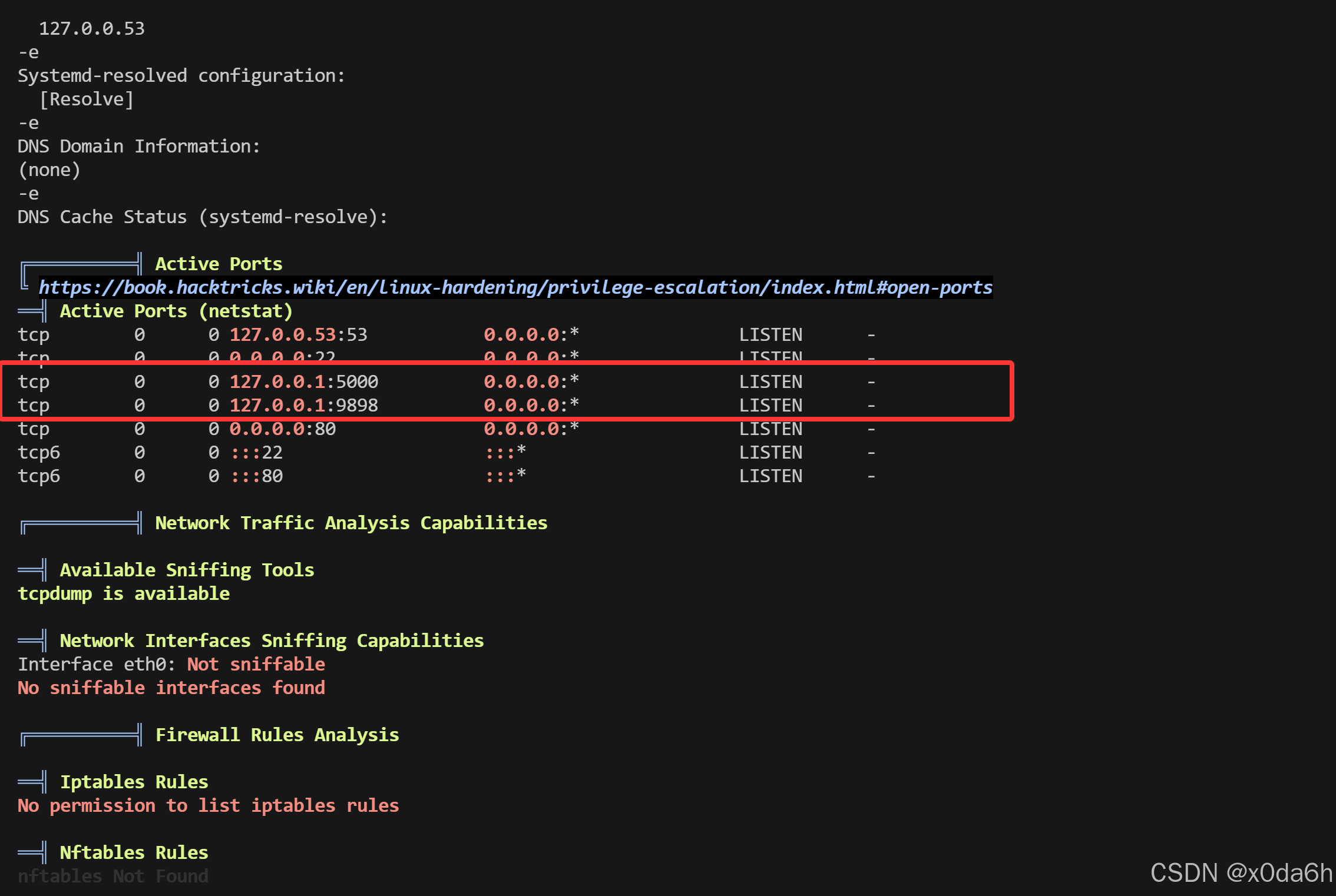 - 使用LinPEAS跑一遍,有两个正在监听的端口分别是5000和9898端口