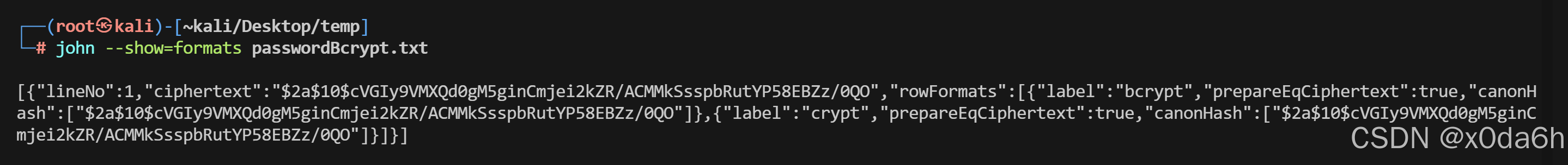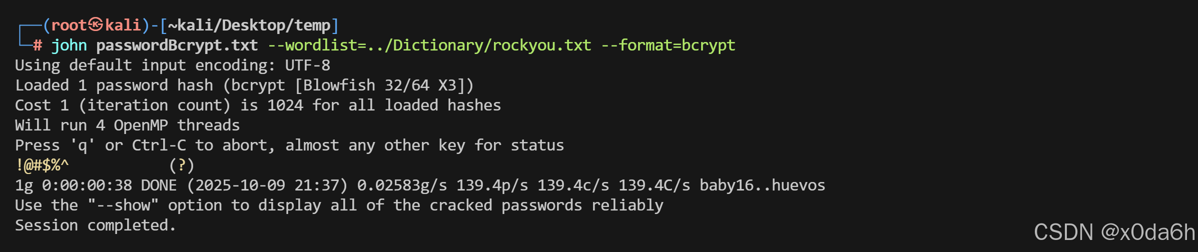 john passwordBcrypt.txt --wordlist=../Dictionary/rockyou.txt --format=bcrypt
