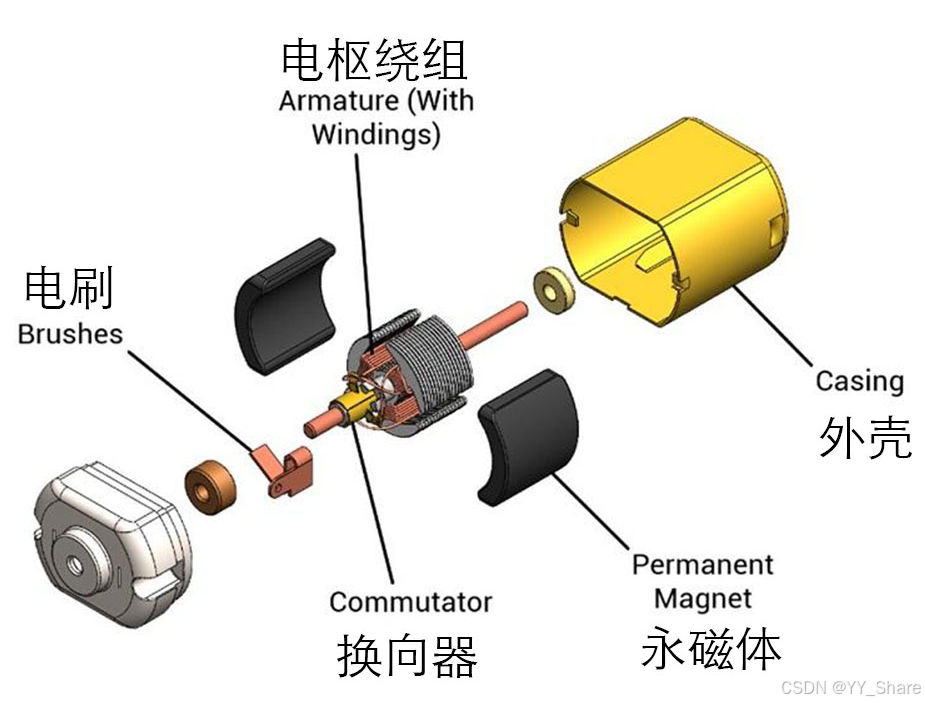 我在小时候就玩过电机,是四驱赛车中的关键部件,那时候我们叫马达,拆开马达可以看到中间旋转的轴上缠绕很多铜线,一般是分三组,三个方向缠绕,外壳有固定的弧形磁铁,两片电刷始终和旋转轴电接触,当给马达通电后,根据著名的定理,通电导线会产生磁场,就是电生磁,磁生电那句话,磁场会与外壳固定的永磁体发生作用力,同性相斥异性相吸,产生的作用力推动旋转轴旋转。给马达的电压越高,则流过的电流越大,产生的磁场强度就越高,马达的转速也就也快。永磁体在空间上是固定,位置不变的,在开始旋转轴旋转的时候,电刷接触旋转轴的位置也会发生变化,通过旋转轴中导线的电流方向也会发生变化,从而保持作用在旋转轴上的力是同一方向,这里不展开细说了,大概就是这个原理。