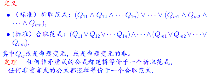 每个命题公式都存在与之等值的合取范式和析取范式,并且它们的形式是唯一的。