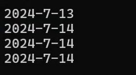 {/*Date d1(2024, 7, 13);d1 -= 30000;d1.Print();*/Date d1(2024, 7, 13);Date ret1 = d1++; // 后置++ret1.Print(); // 打印原值d1.Print(); // 打印加1后的值Date d2(2024, 7, 13);Date ret2 = ++d2; // 前置++ret2.Print(); // 打印加1后的值d2.Print(); // 打印加1后的值