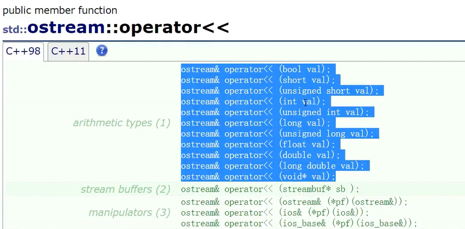 {int i=0;int d1=0;std::cout << i << d; //本质是转为上述重载好的函数调用,然后返回iostream类型