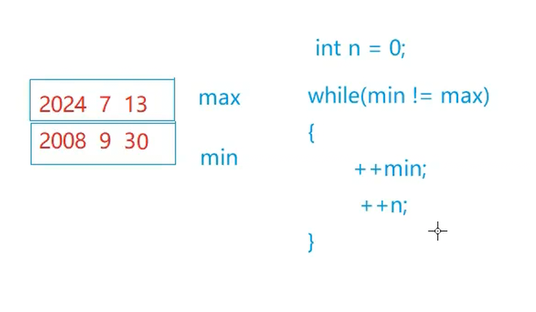 {int flag = 1;Date max = *this;Date min = d;if (*this < d){max = d;min = *this;flag = -1;}int n = 0;while (min != max){++min;++n;}return n * flag;