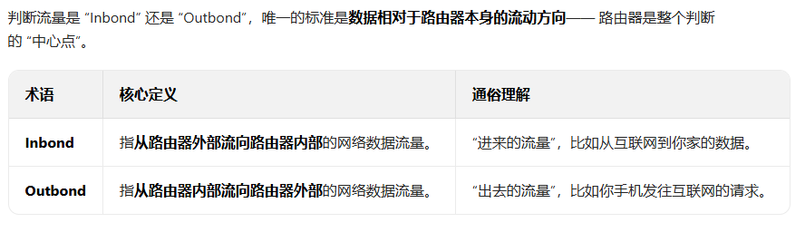 定义数据是inbond还是还是outbond可把路由器作为参照物。