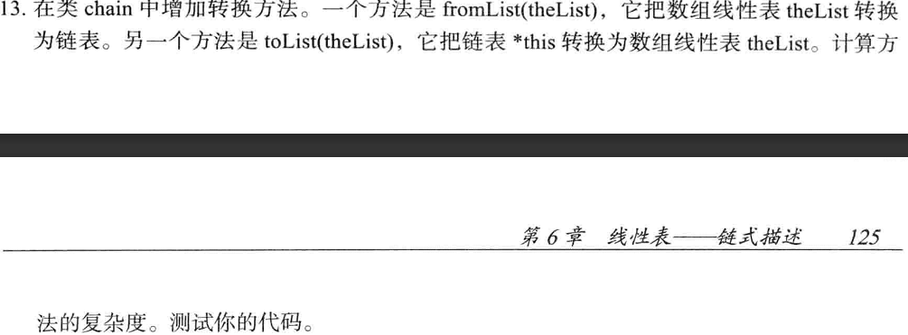 // 1. fromList:将数组线性表 theList 转换为当前链表void fromList(const arrayList<T>& theList) {// 先清空当前链表(删除所有现有元素)while (!empty()) {erase(0);}int n = theList.size(); // 数组线性表的元素个数for (int i = 0; i < n; ++i) {insert(i, theList.get(i)); // 逐个插入数组元素到链表}}// 2. toList:将当前链表转换为数组线性表 theListvoid toList(arrayList<T>& theList) const {// 先清空目标数组线性表while (!theList.empty()) {theList.erase(0);}int n = listSize; // 当前链表的元素个数for (int i = 0; i < n; ++i) {theList.insert(i, get(i)); // 逐个获取链表元素插入到数组}}