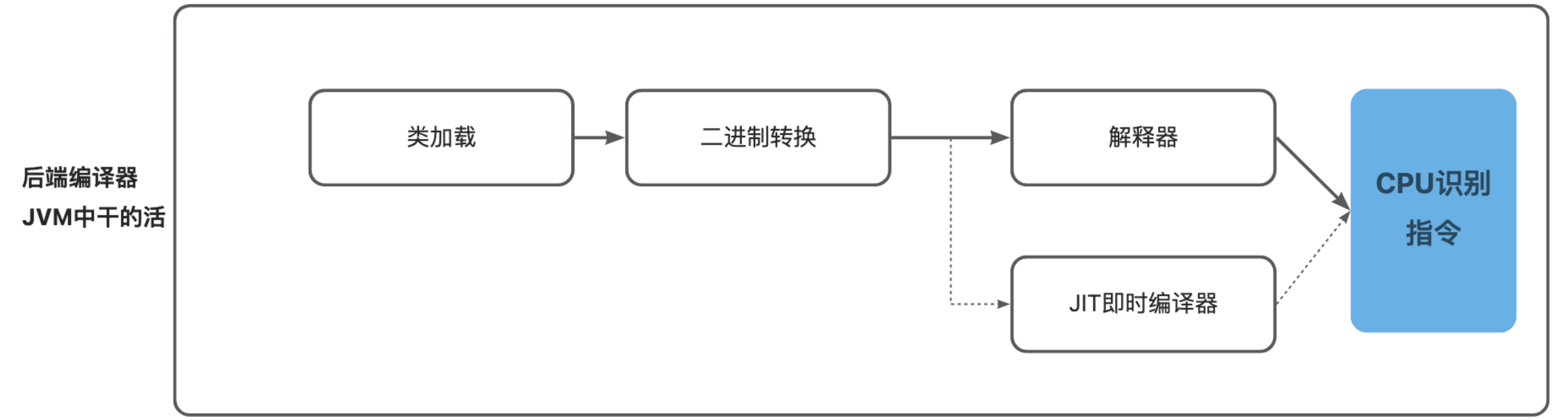 但 JVM 不能直接执行.class文件,它有两种方式来“跑”代码: