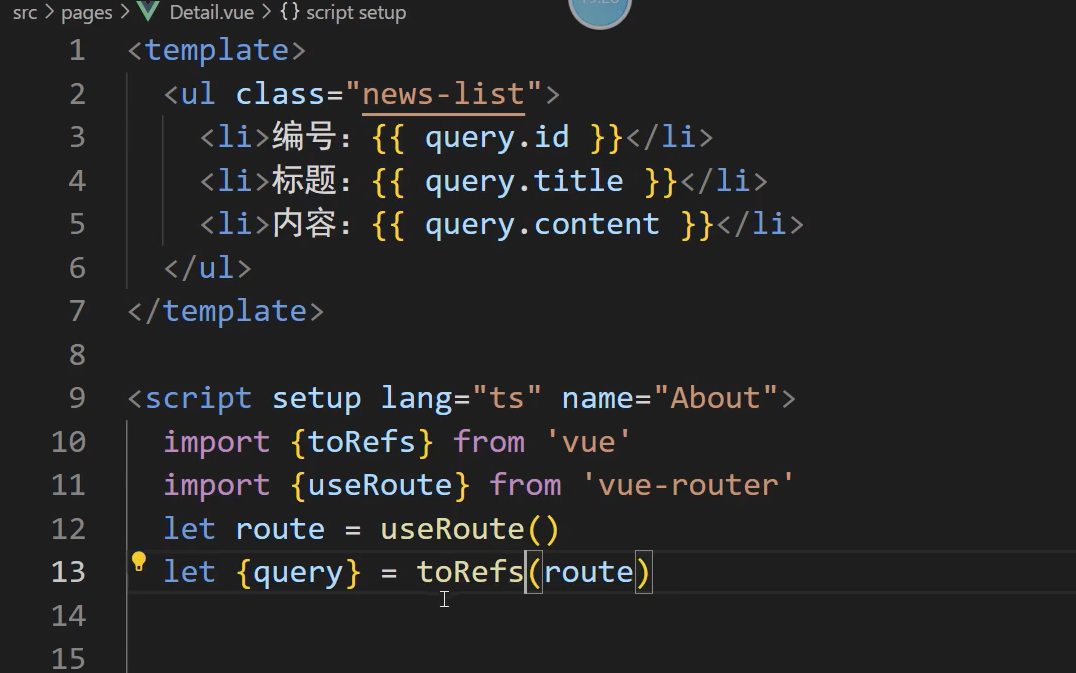 // 现在可以直接用 defineProps 接收,不再依赖 useRoute()