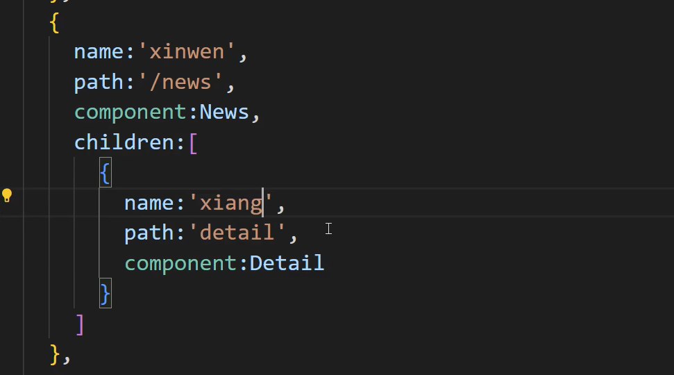{path: '/user/:id', // 动态字段以冒号开始name: 'User',component: User
