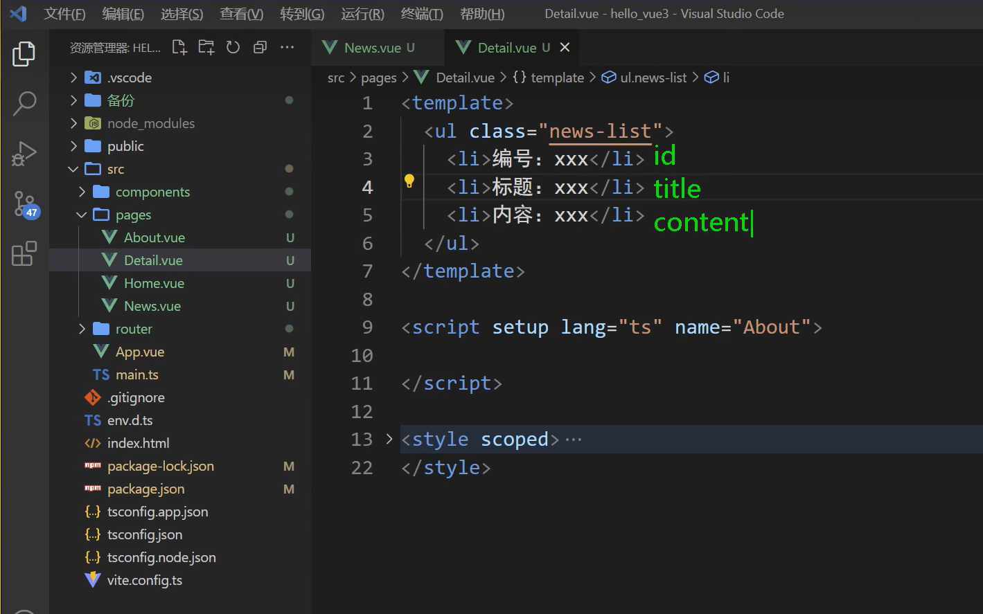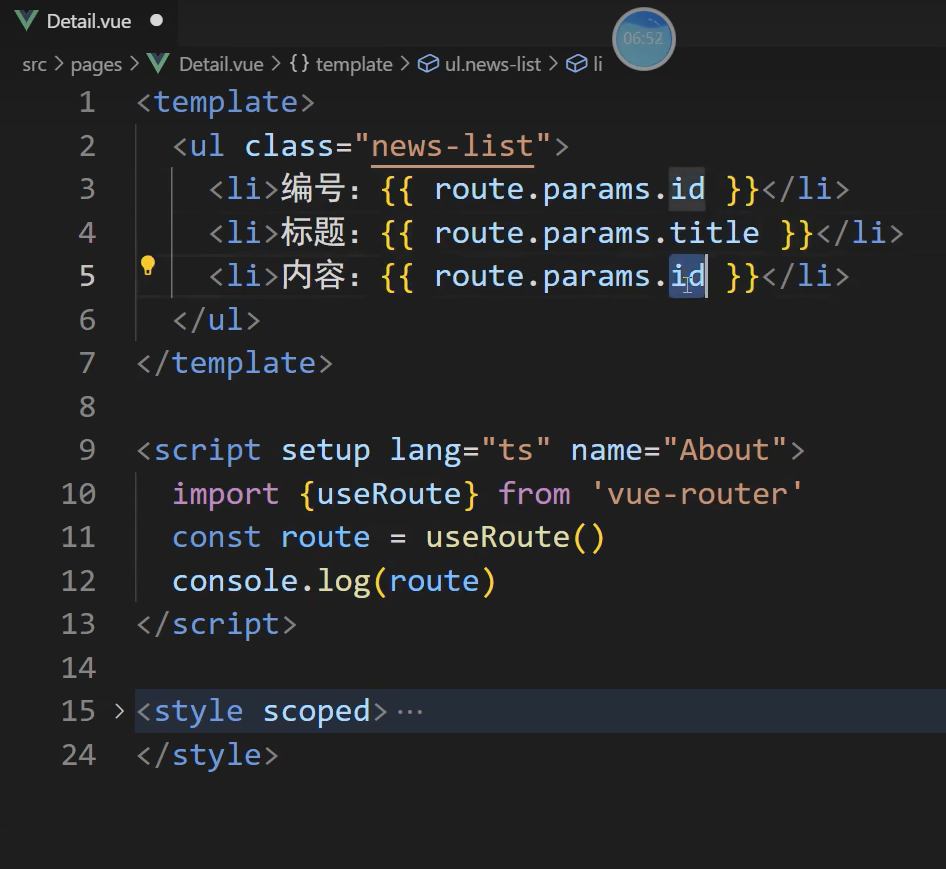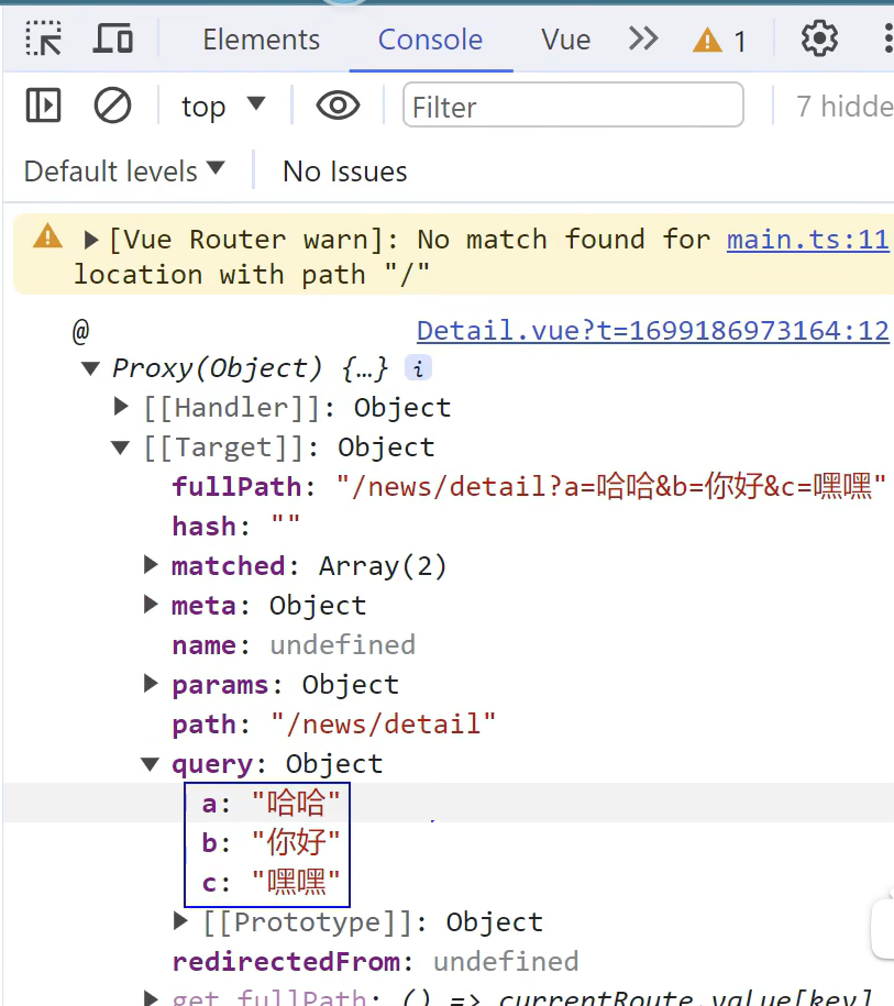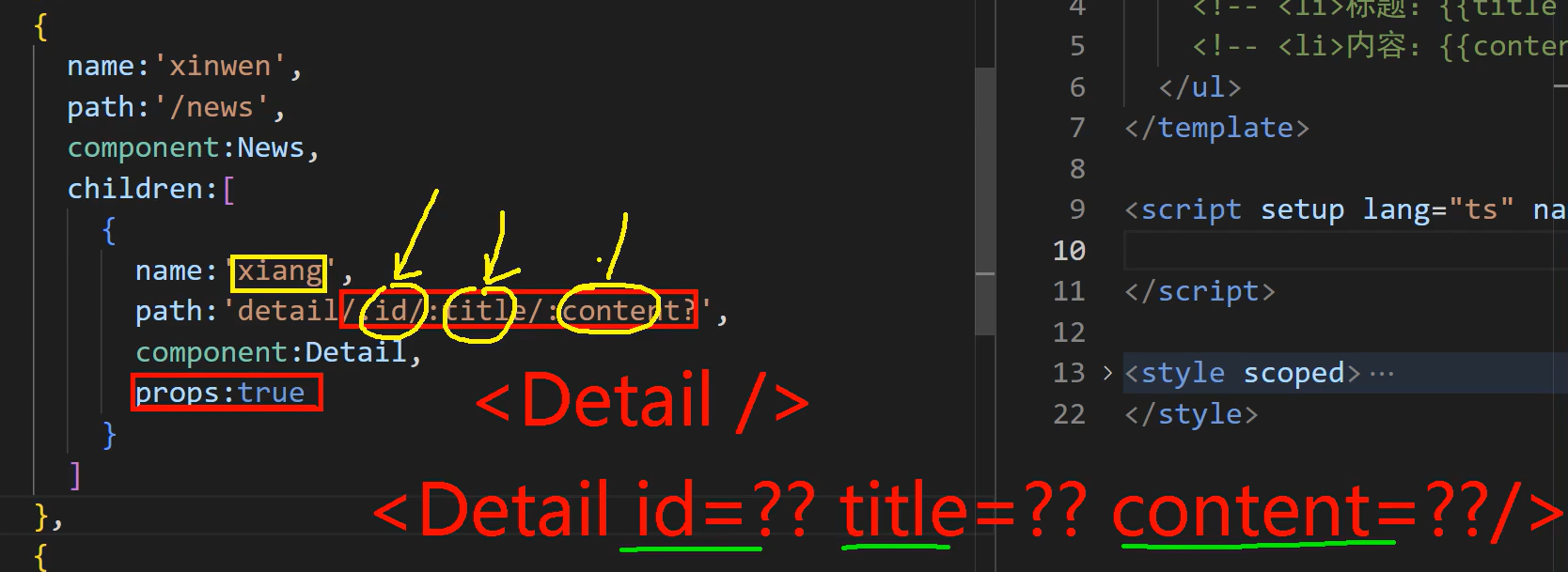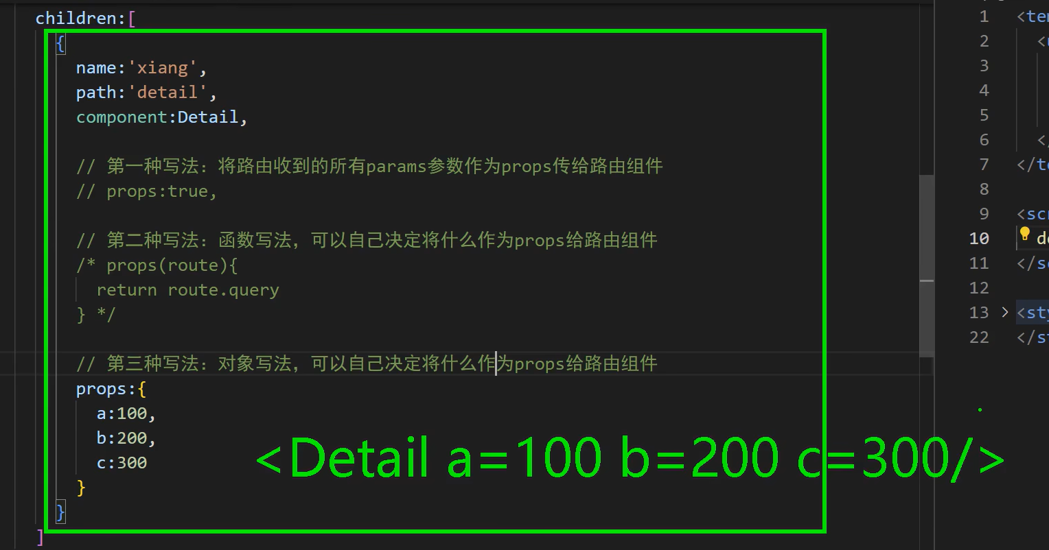 使用这三种写法都是在<detail>路由组件后面继续加参数