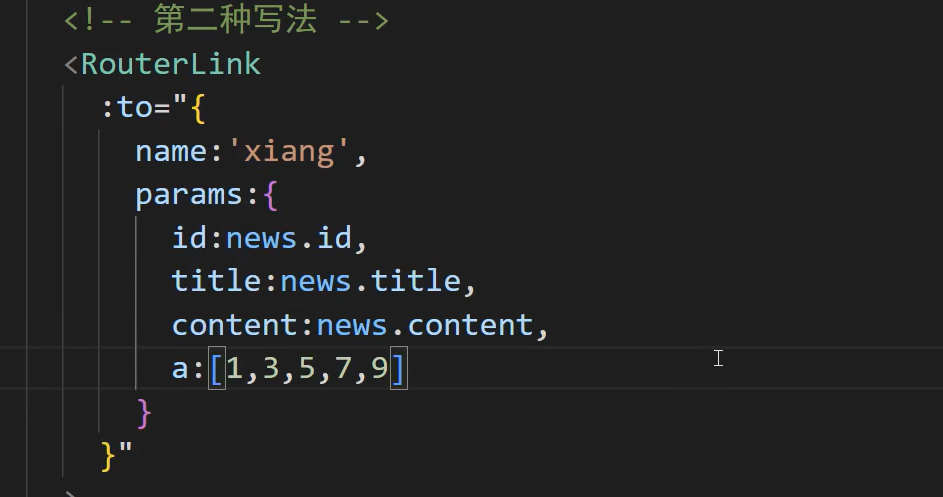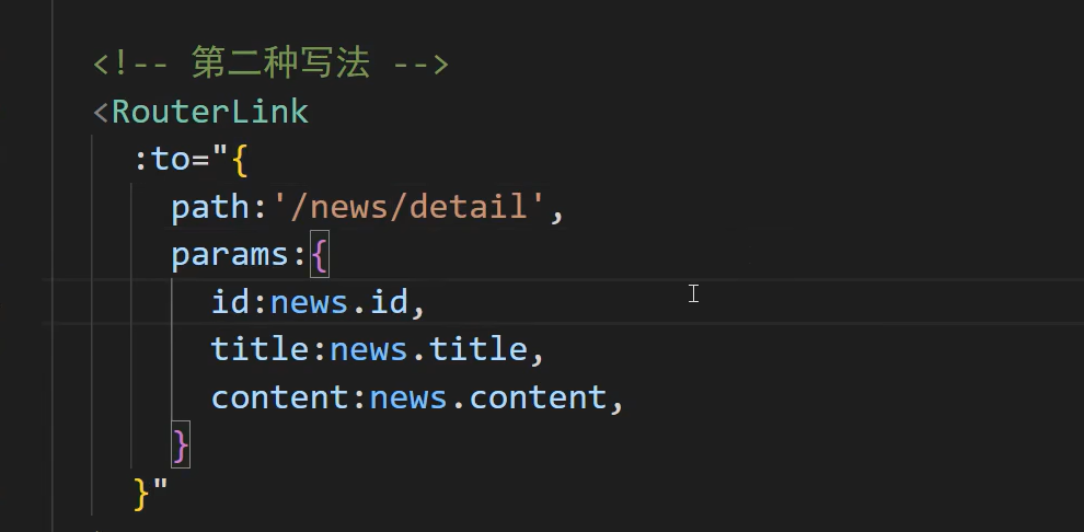 注意:对象写法必须使用 `v-bind`(即 `:`)绑定 `to` 属性。