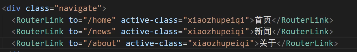 <router-link to="/home">Home</router-link><router-link to="/about">About</router-link>