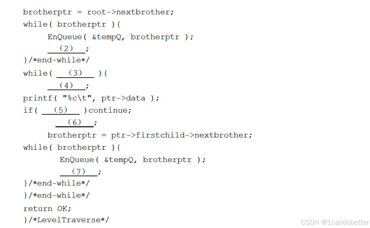 (6) EnQueue( &tempQ, ptr->firstchild )