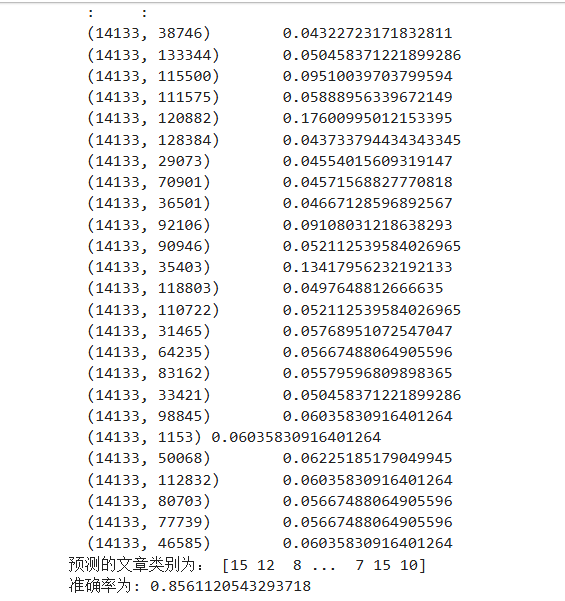 输出的是一个 0~1 的小数,比如 0.86,表示模型在测试集上的准确率是 86%。