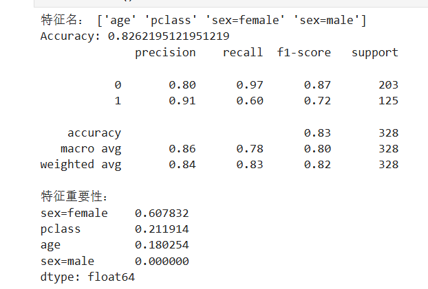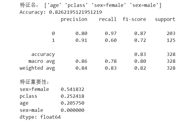 特征名: ['age' 'pclass' 'sex=female' 'sex=male']