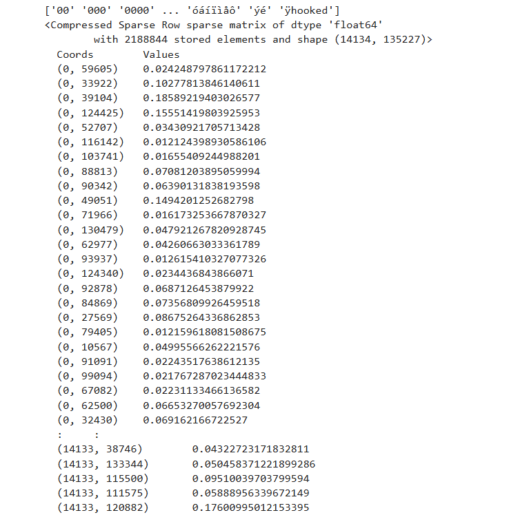 训练集有很多个文档,训练集统计结果(指定统计词频):