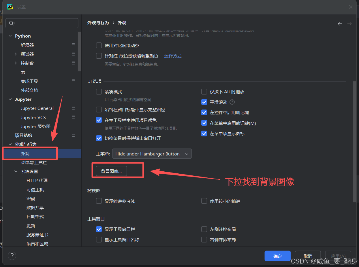 同样找到设置,然后找到里面的“外观”并选择,然后下来找到背景图像: