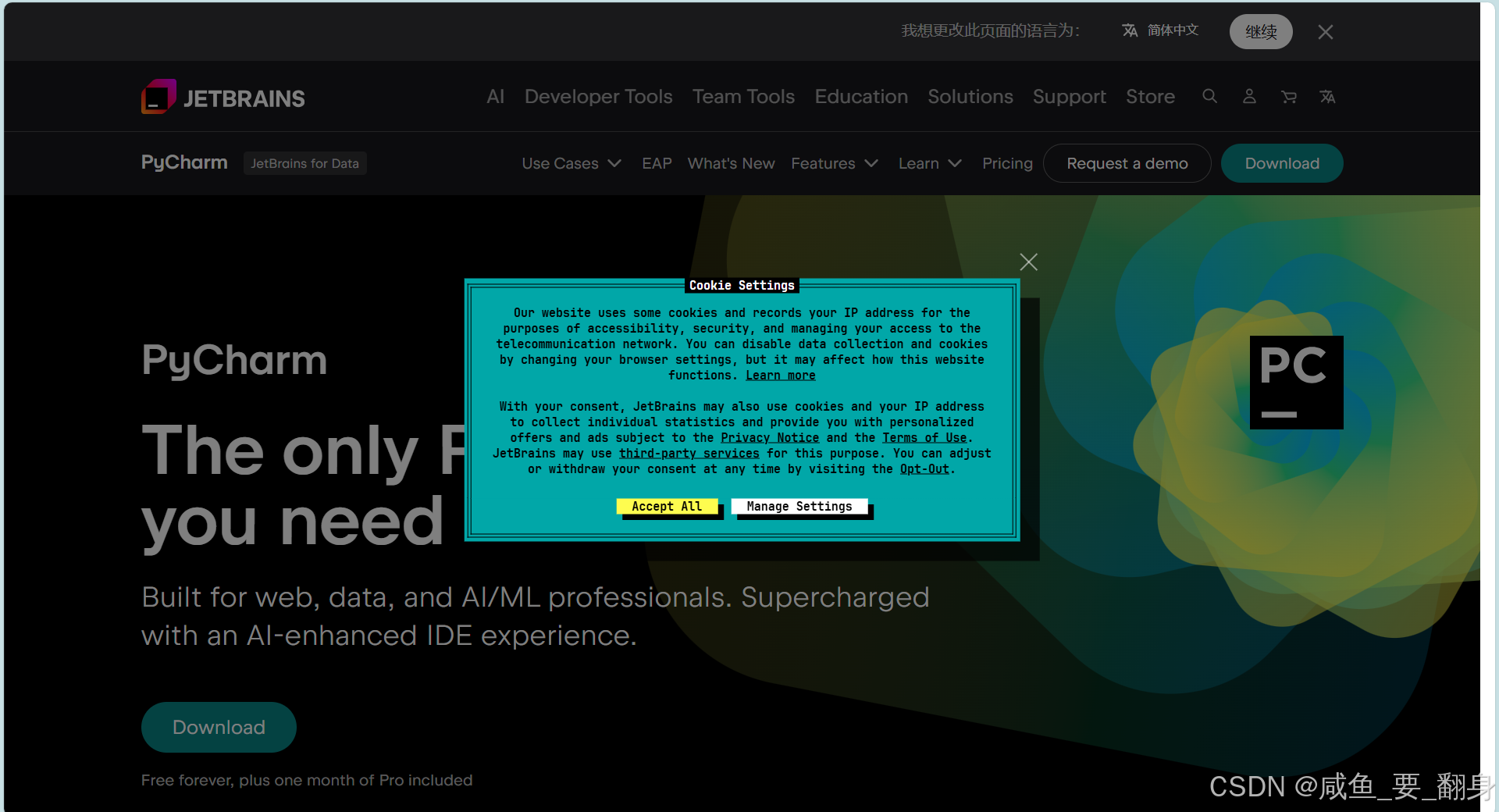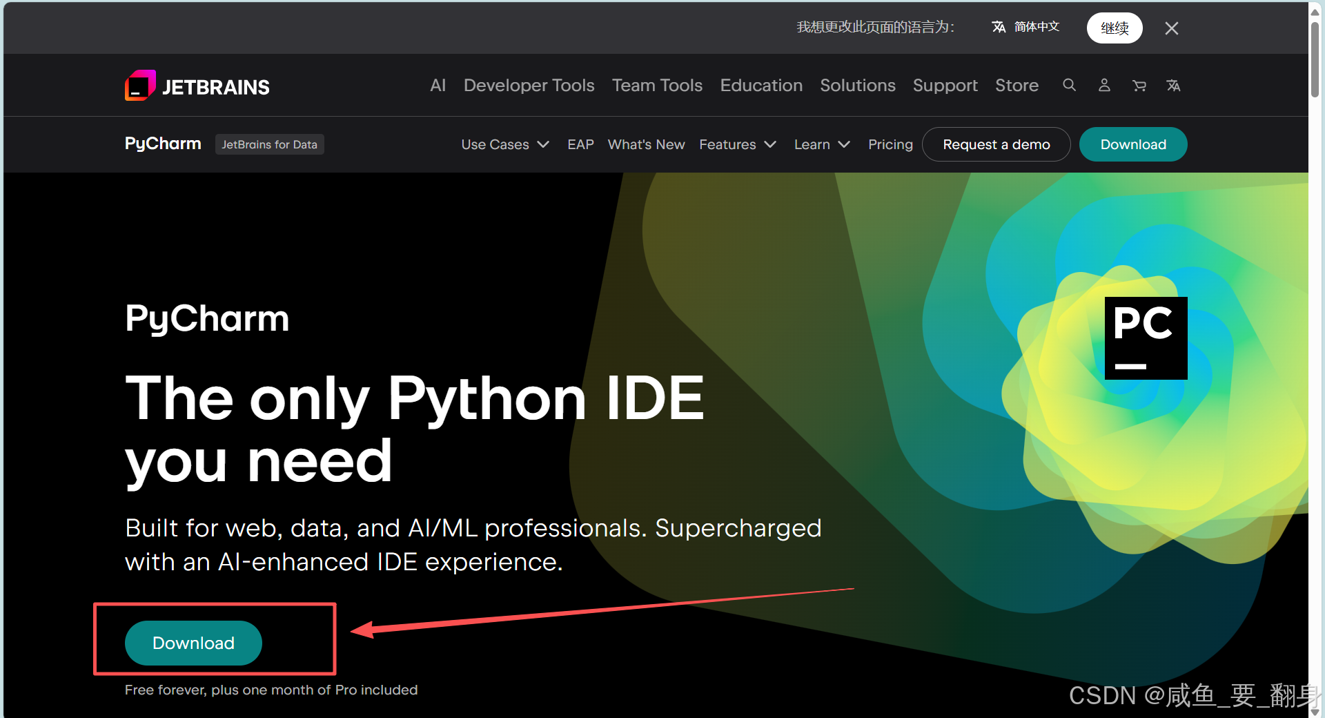 (1)找到官方网站(PyCharm: The only Python IDE you need)