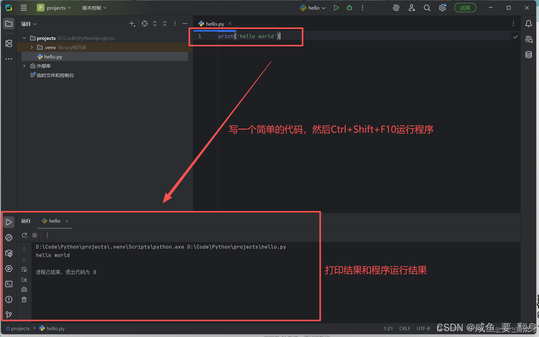 我们也可以通过Ctrl+Shift+F10运行程序,如下: