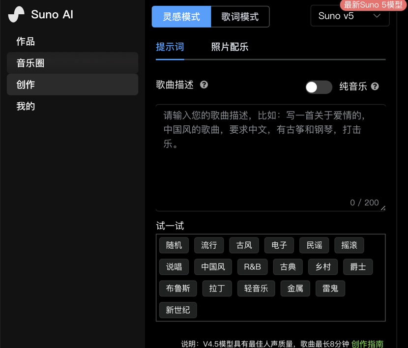 最长8分钟!Suno V4.5来袭,AI音乐创作再突破,支持API调用