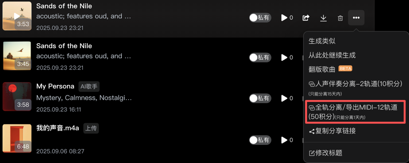 Suno V4.5+上线全轨分离,支持一次性分离12轨道