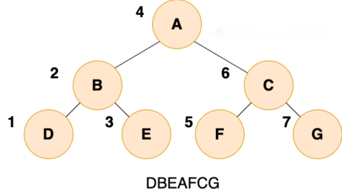 - 中序遍历:左子树->根结点->右子树(左->根->右)