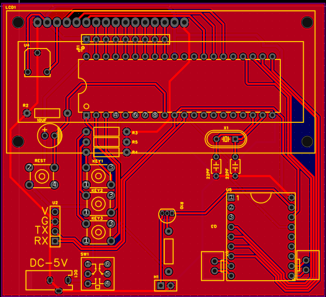 {if(SET== 0)//设置键按下{ delay_ms(20);if(SET== 0){while(!SET);set_flag=1;lcd_clear();}}if(ADD == 0)//加键按下{delay_ms(20);if(ADD == 0){while(!ADD);add_flag = 1;}}if(DEC == 0)//减键按下{delay_ms(20);if(DEC == 0){while(!DEC);dec_flag = 1;}}