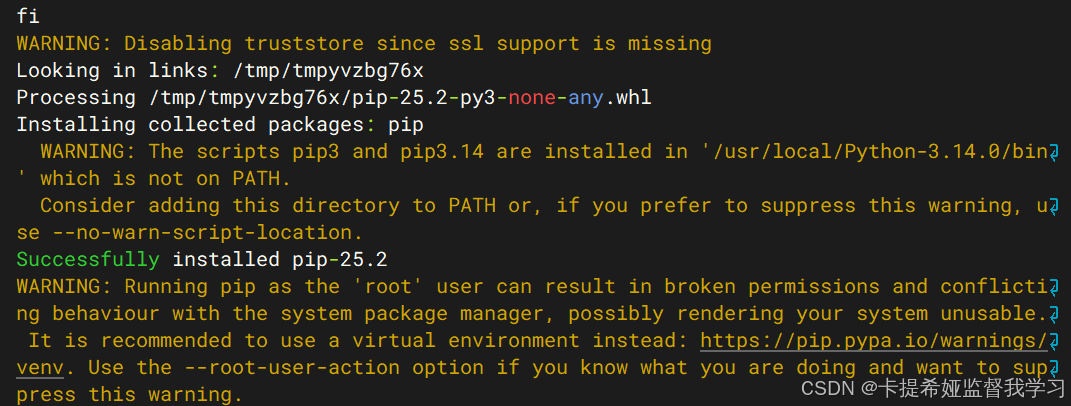 ./configure --prefix=/usr/local/Python-3.14.0/ --with-openssl=/usr/bin/openssl && make -j 4 && make install#--prefix指定安装位置