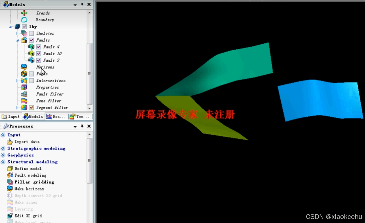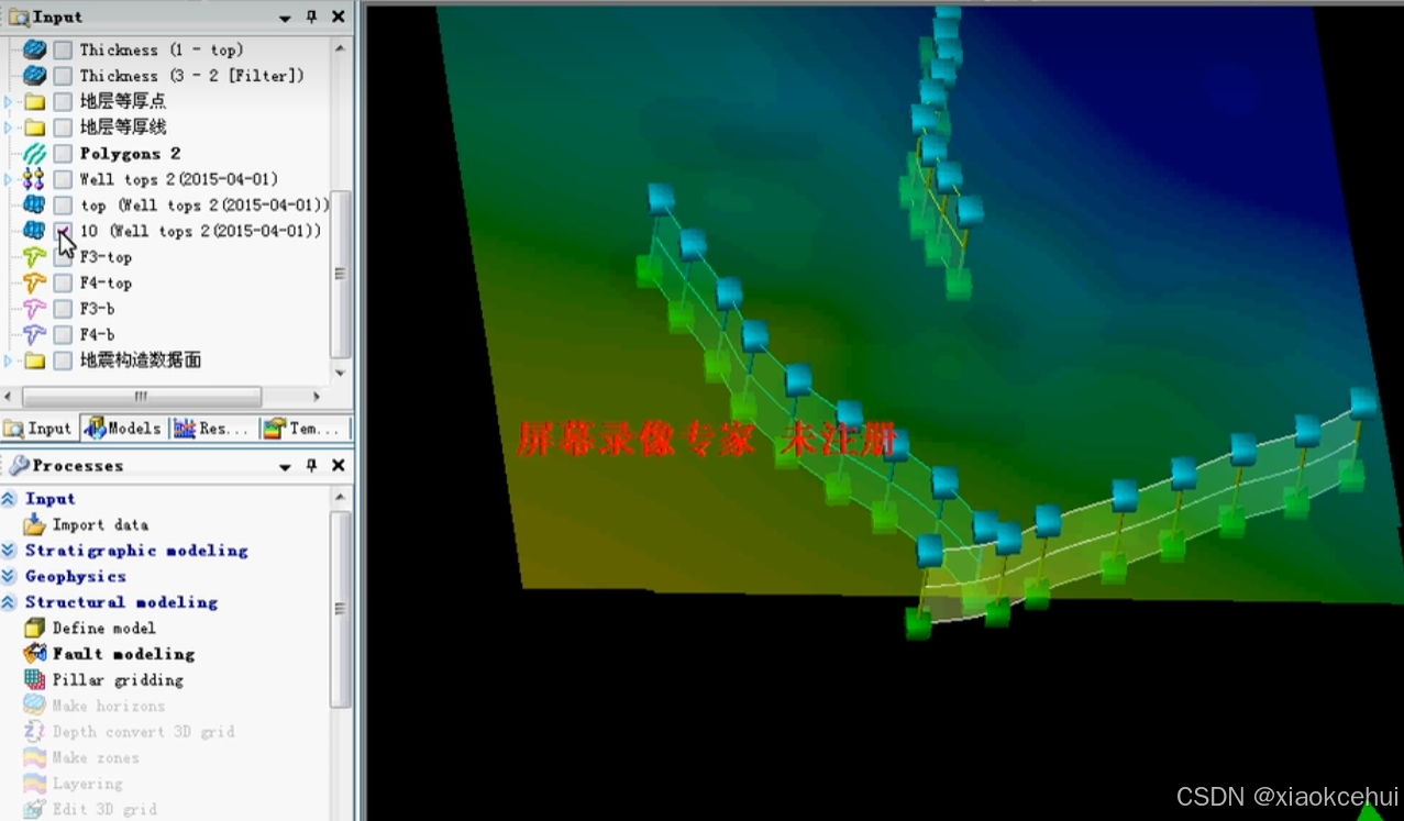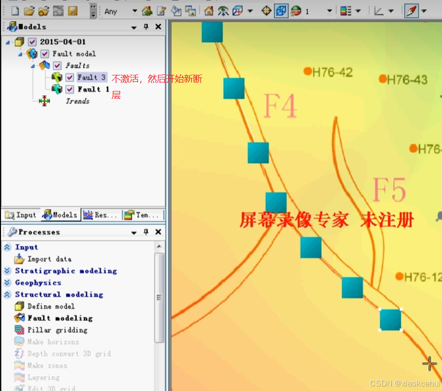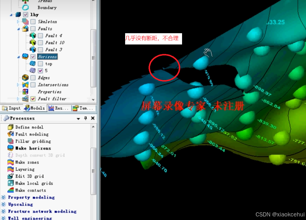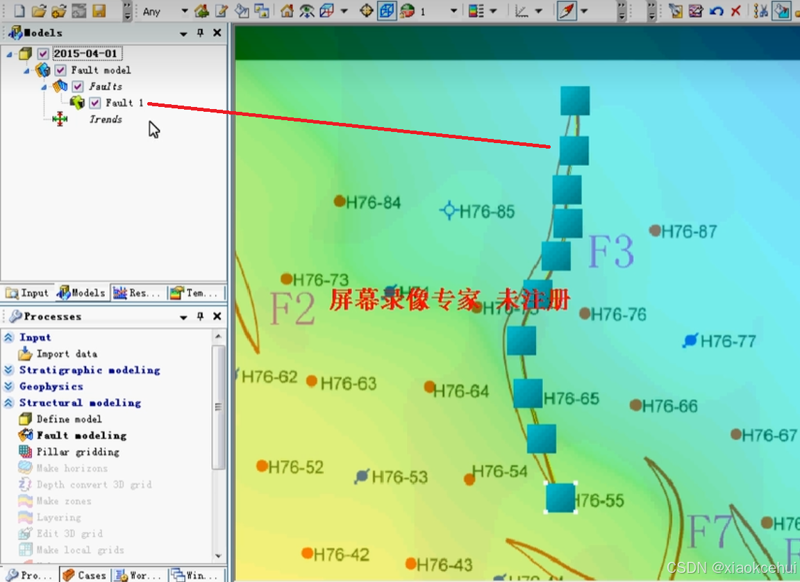 两个断层交切,选择两个断层的最后1个点,Connect two faults,扭曲了,不合理
