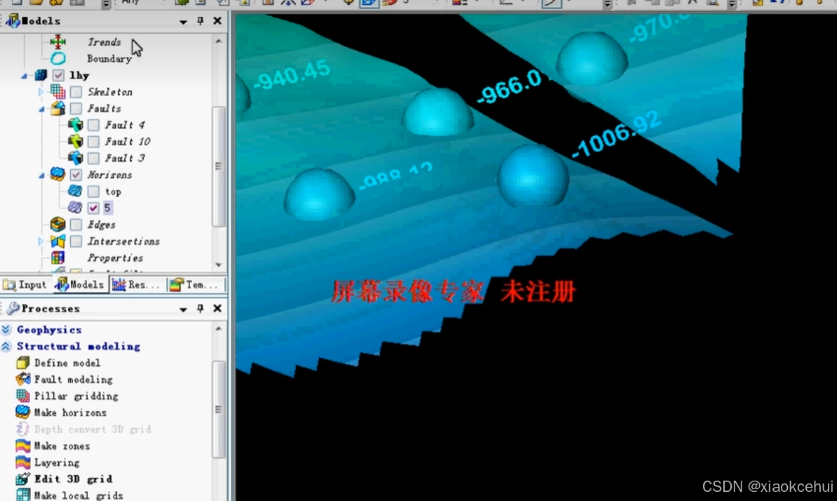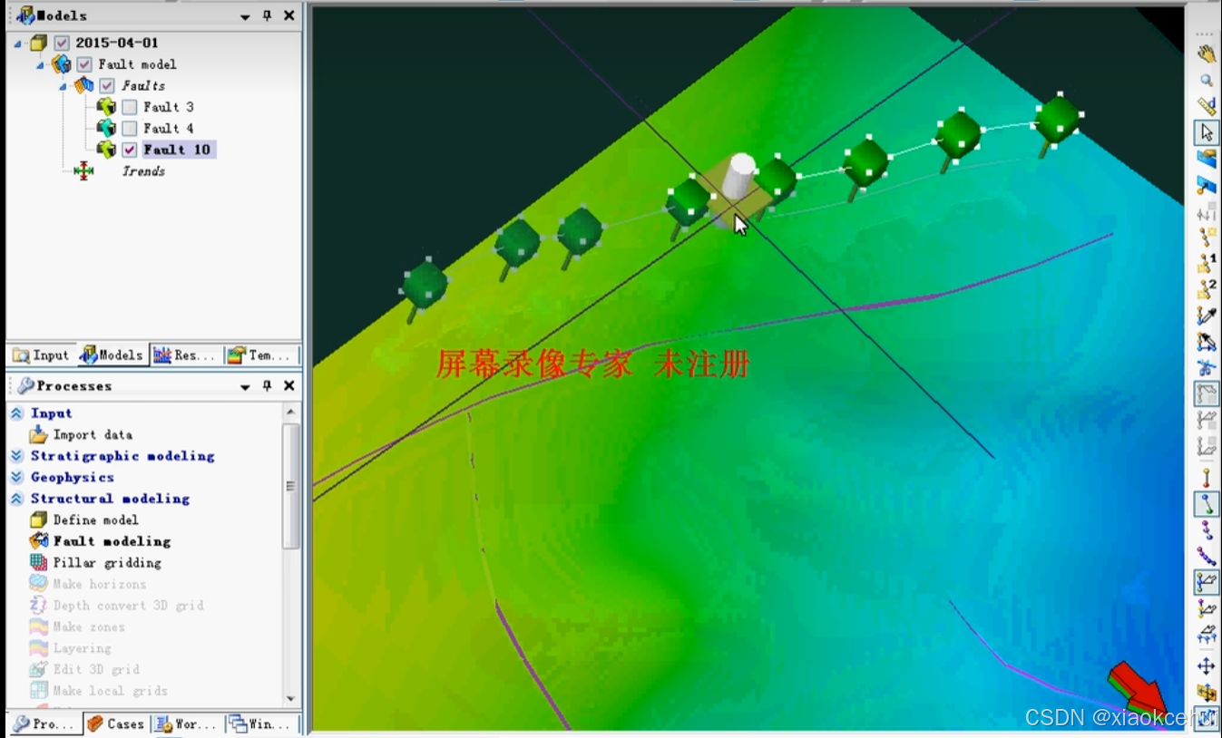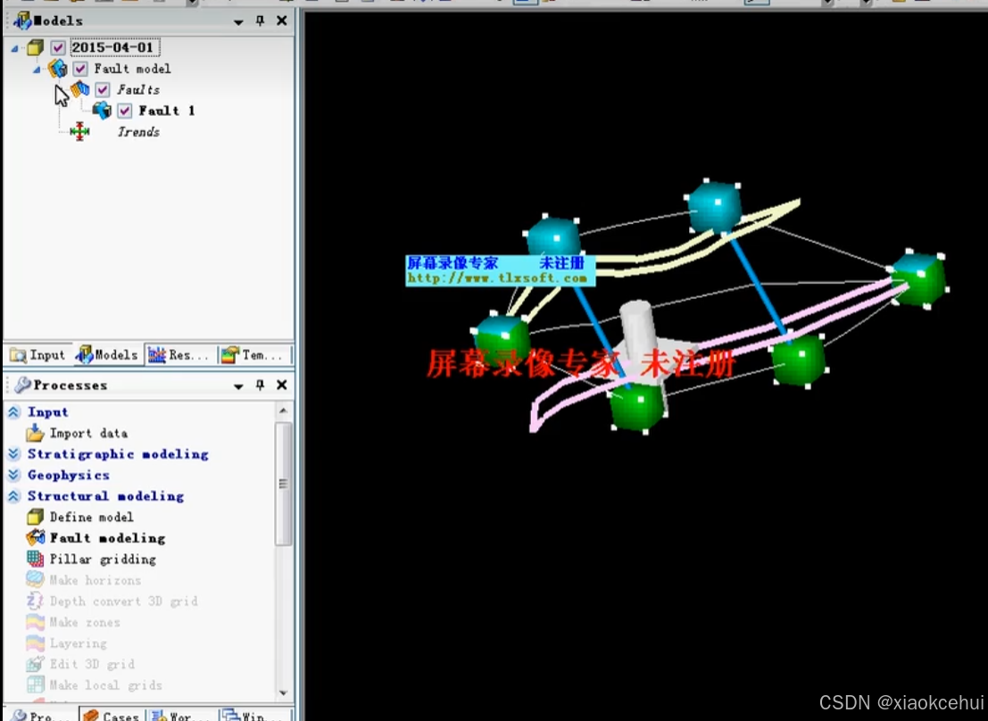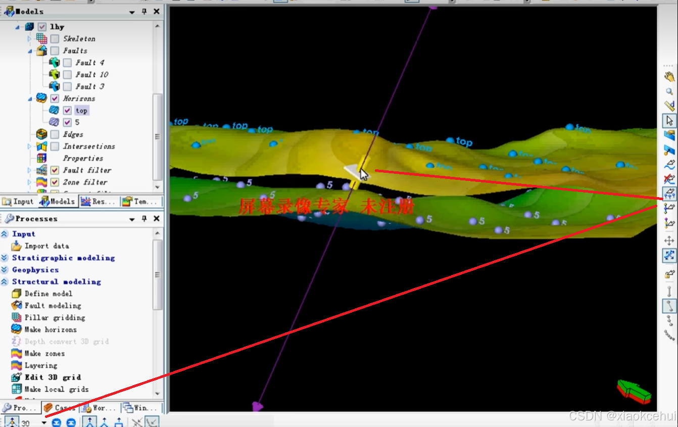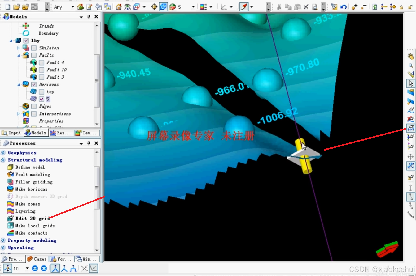 两个断层交切,选择两个断层的最后1个点,Connect two faults,扭曲了,不合理