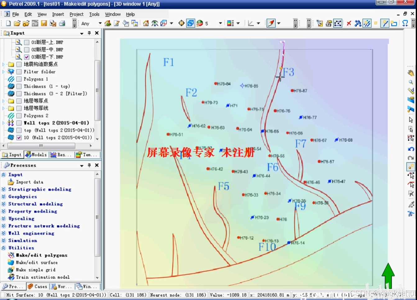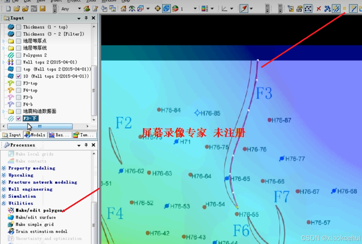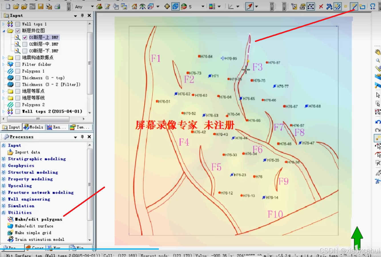 再选择下位图,map view from above,make/edit polygon编辑断层下部线,不是polygon
