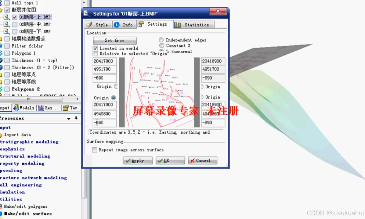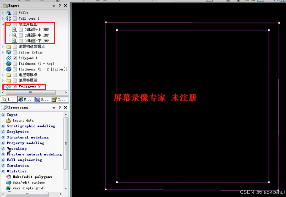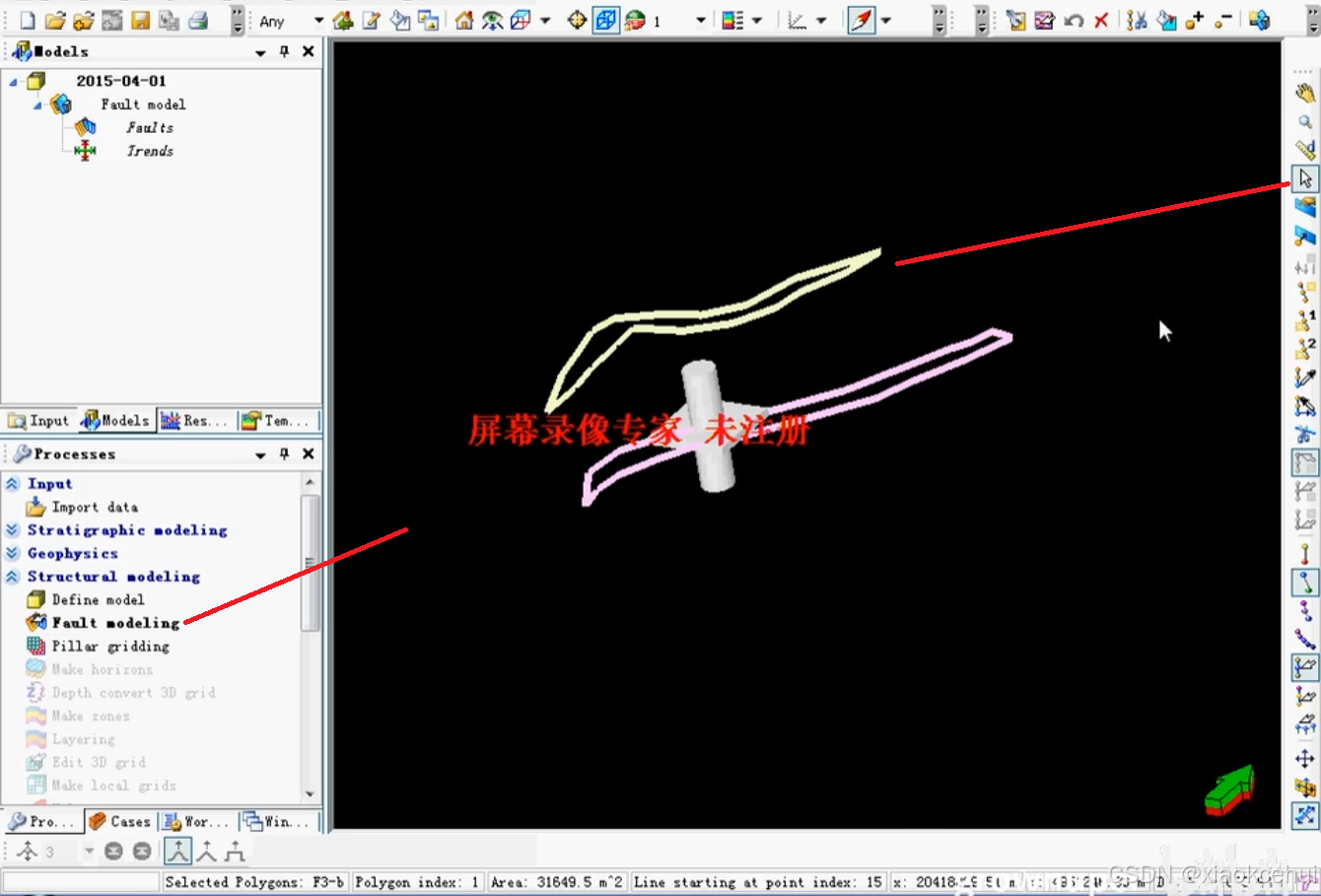 再选择下位图,map view from above,make/edit polygon编辑断层下部线,不是polygon