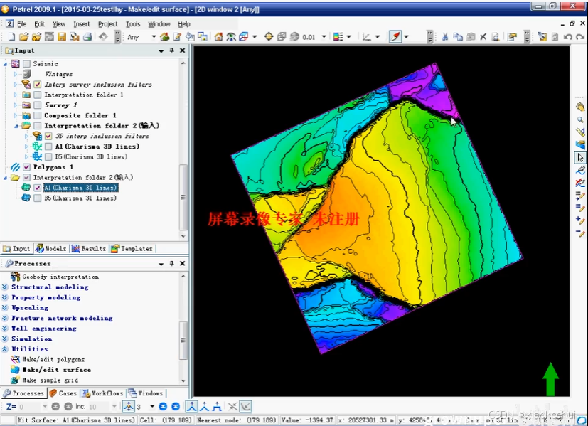 画完了后,显示的是垂直断层,实际上我们的断层很少是完全垂直的。选择底面。