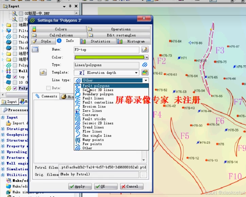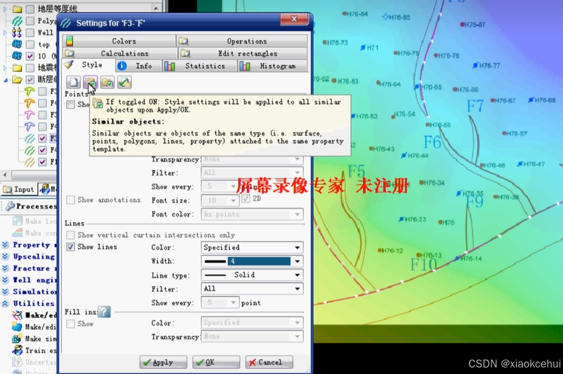 上面的断层线进行归类到文件夹,修改断层线的宽度,选择同步到所有属性线。