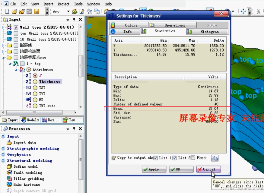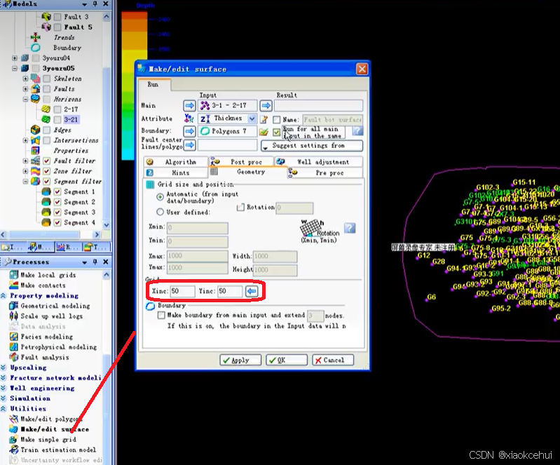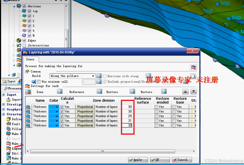 垂直分辨率,厚度层平均值15.04m,要想0.5m分辨率,需要分成30份。