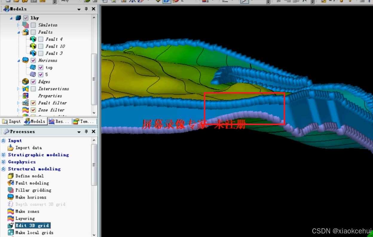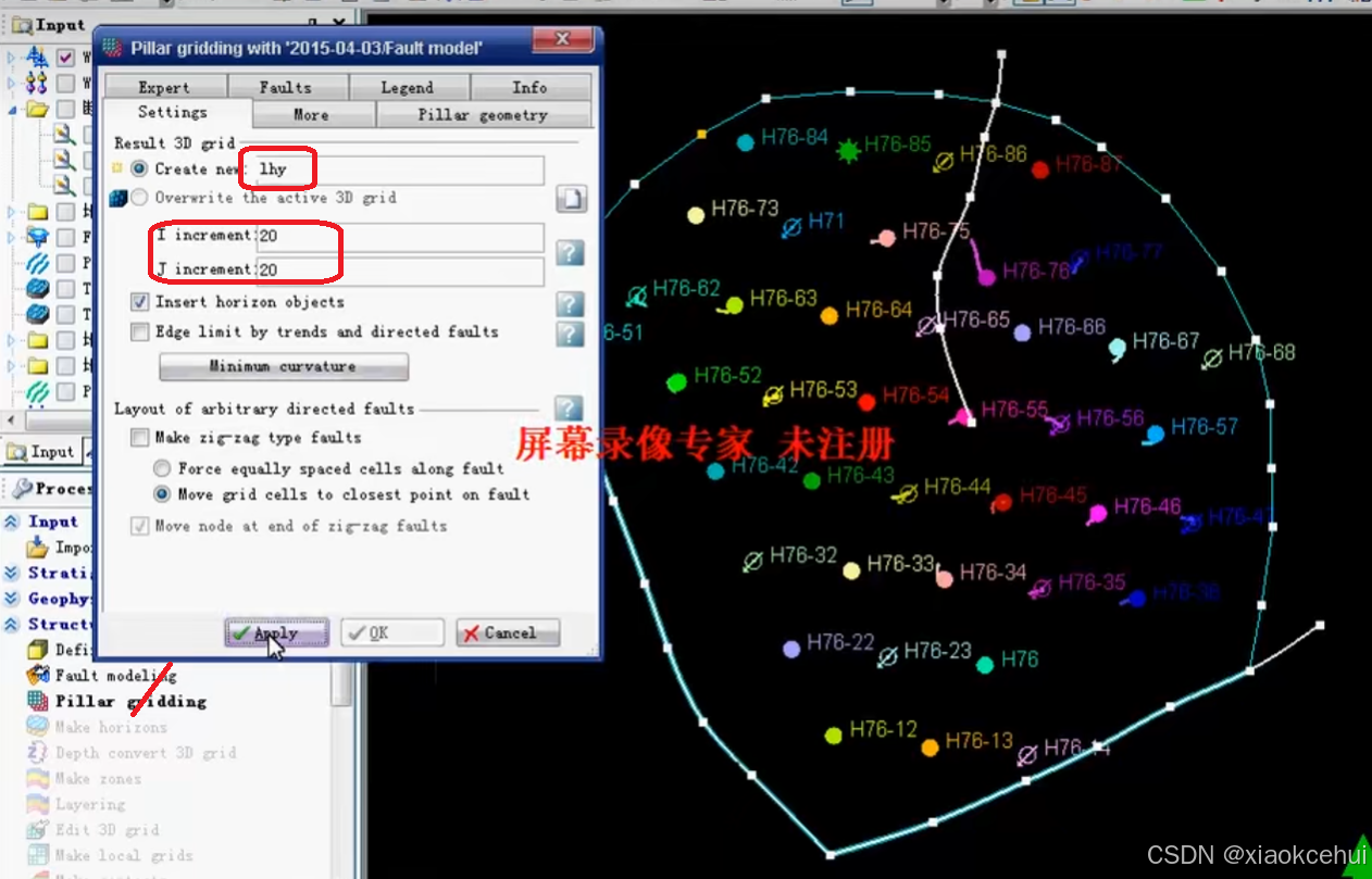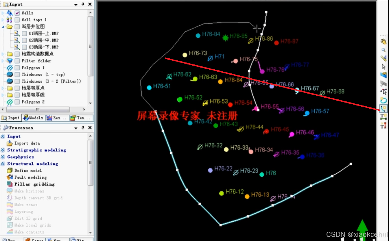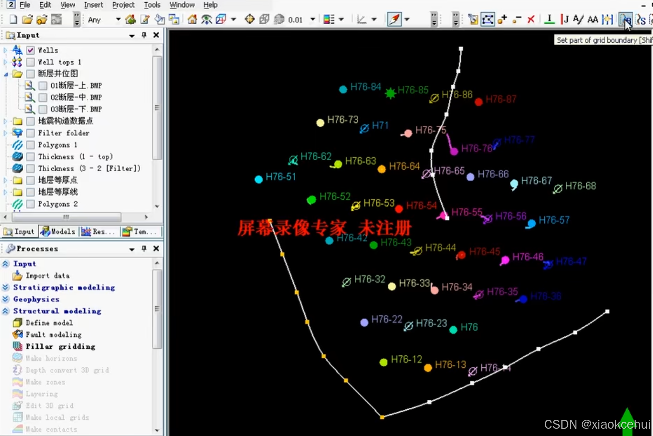 选择边界,可以用断层做为边界,也可以以断层部分点作为边界(选择点),边界线会变成蓝色。