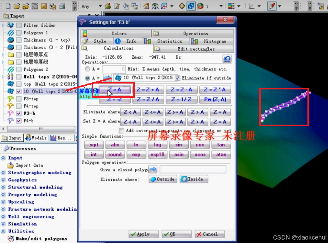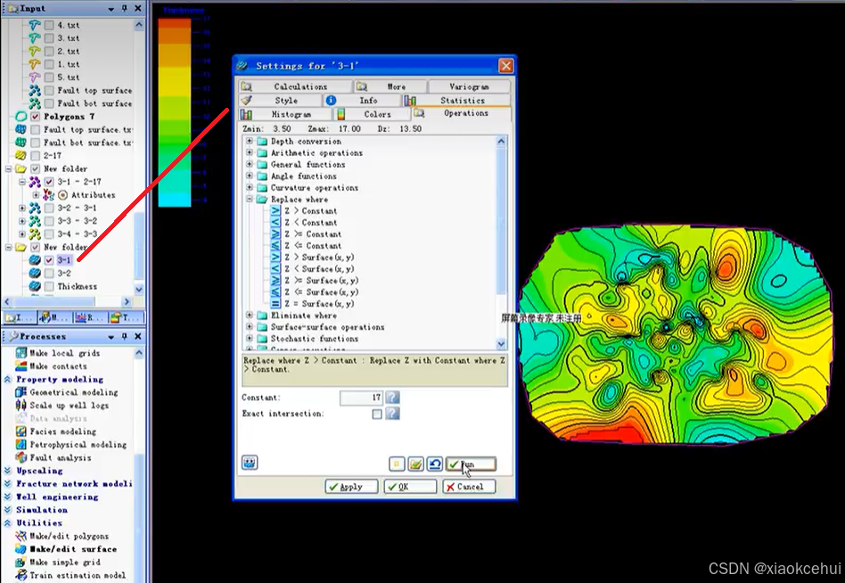 生成的面的极值与厚度文件不一致,通过Setting的Operations进行操作,小于最小值等于最小值,大于最大值等于最大值。Surface Operations中用Smooth平滑一下。颜色也对应调整一下。