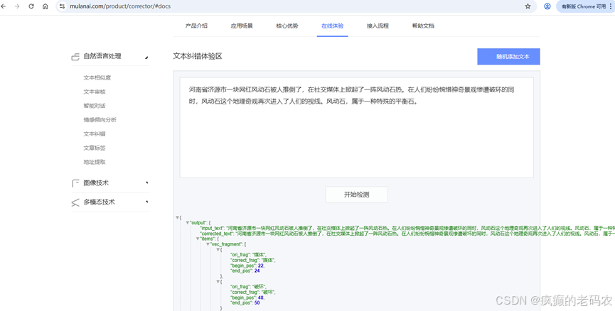 基于这里相关的能力,完全可以对中文文本进行错别字识别和智能纠错。