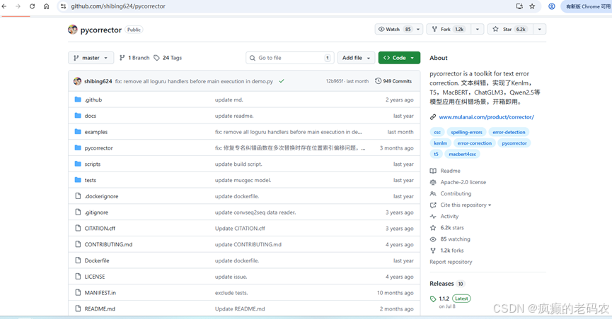 详细介绍地址:https://shibing624.github.io/pycorrector/