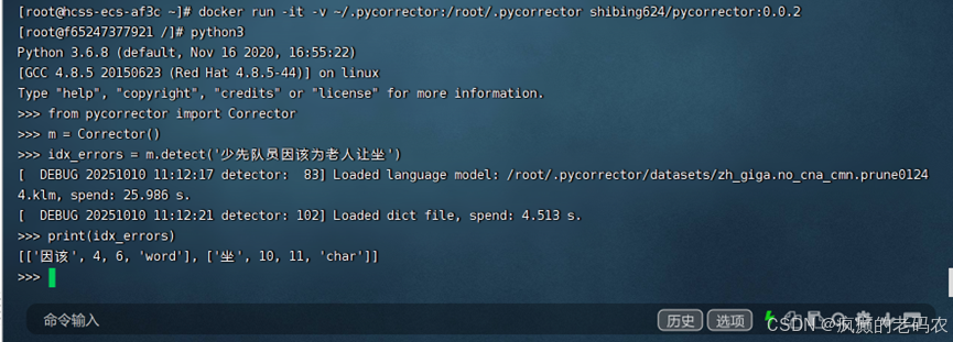 docker run -it -v ~/.pycorrector:/root/.pycorrector shibing624/pycorrector:0.0.2