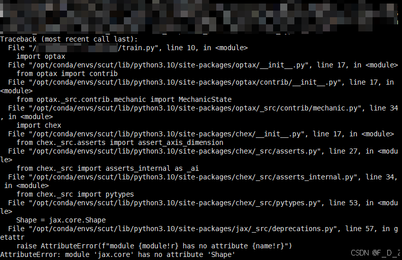深度学习网络训练报错AttributeError: module 'jax.core' has no attribute 'Shape'.