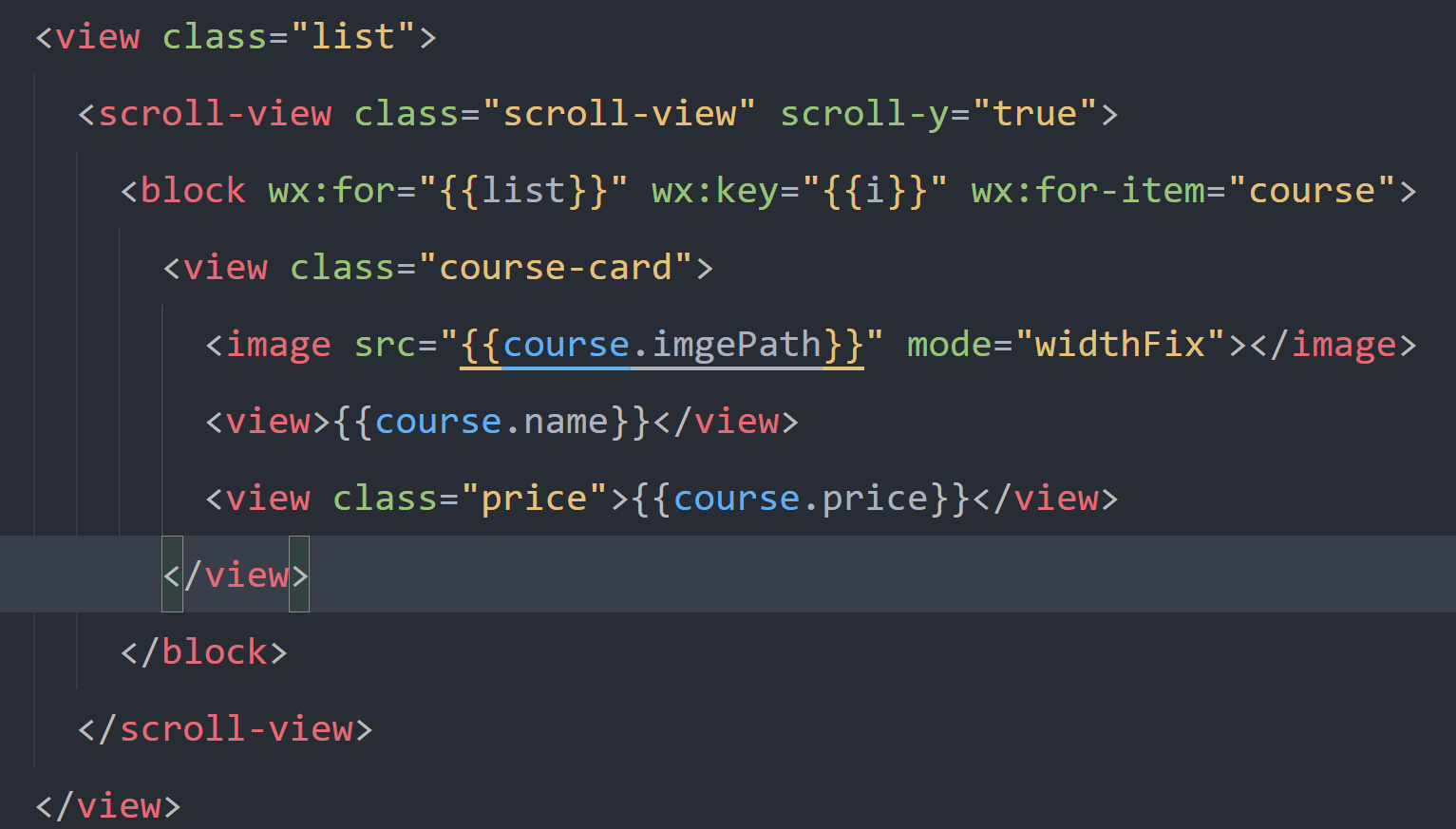 3:wxml设计涉数据绑定也是必备掌握的,如下所示