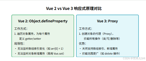 用一张图直观展示最核心的差异 —— 响应式系统的进化: