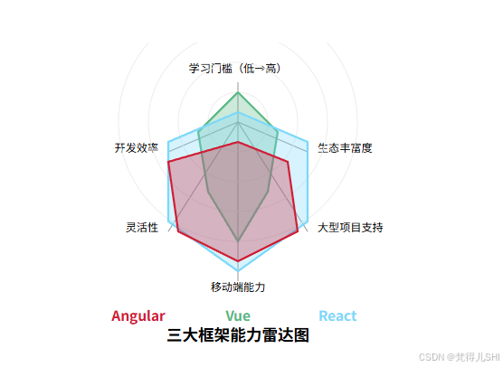 用雷达图直观展示各框架的 "能力范围":