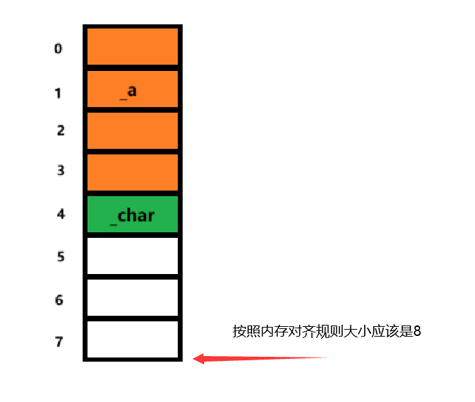 按照内存对齐,我们肯定会认为是 8,思路:int 类型_a 偏移量从 0 开始排到 3,然后放的是 char类型的_ch,然后输出的字节应该是成员最大对齐数的整数倍也就是 8,但是事实确实 12,为什么呢?这里就涉及到了虚表的概念。