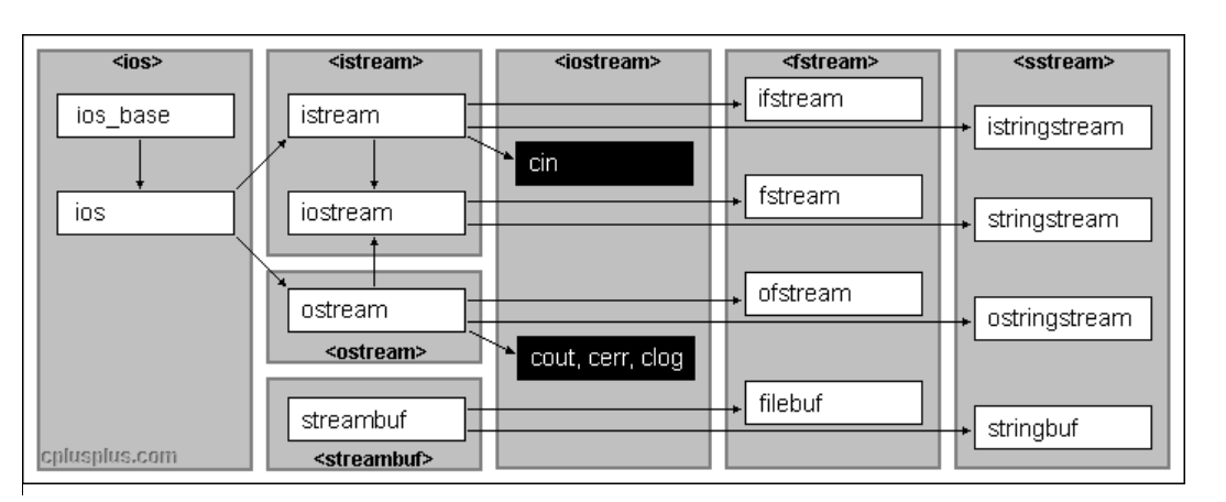 C++有一个庞大的类库,其中ios由ios_base派生而来,istream和ostream由ios派生而来,iostream则继承了istream和ostream,fstream和stringstream又继承自iostream,如下图所示: